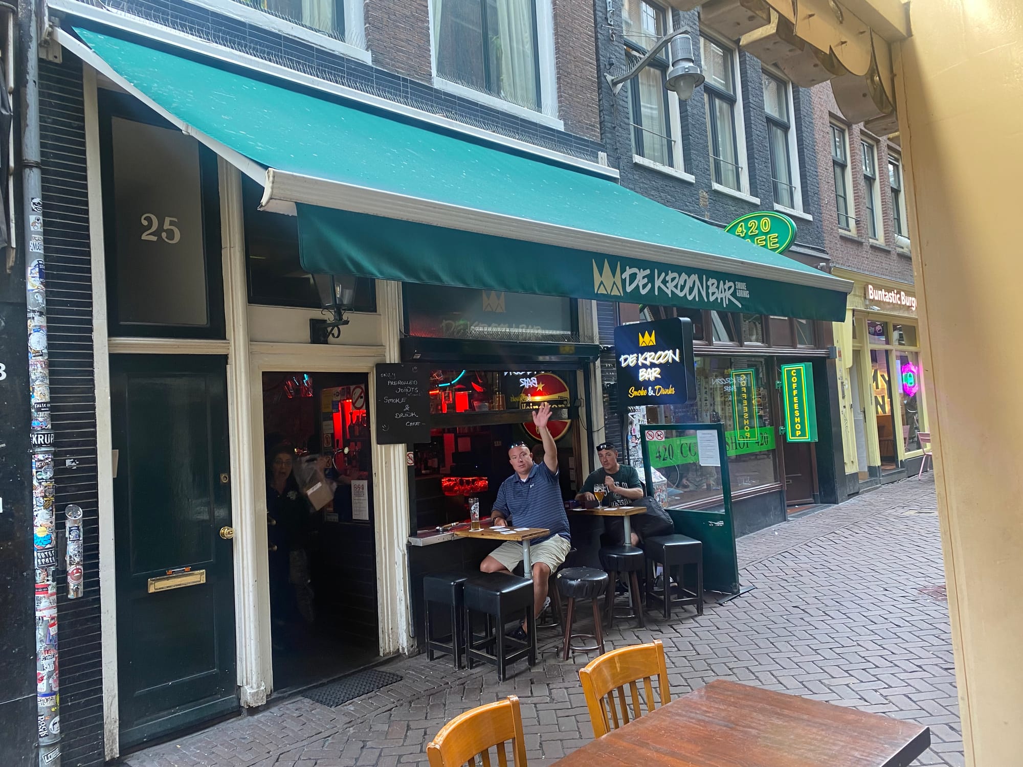 Amsterdam was hot as fuck. We started at a bar named De Kroon and ended at the very same bar. The bartender’s name was Rose. The place was divey, sticky, and dark—not my first choice in a destination—but you forget all about that once you meet Rose. She’s a friendly Turkish woman who speaks three languages fluently, and it’s always nice to find people who speak your language. On our first visit, she was super friendly and engaging, asking the usual questions: Where are you from? Why does your husband talk so weird? She wasn’t just like that with us, either. Rose was friendly to everyone who entered—unless they were underaged kids trying to score a round. She could see them coming a mile away.