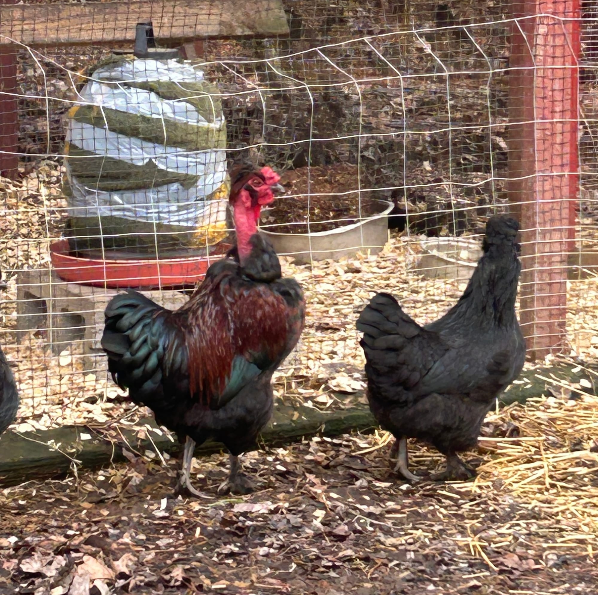 The flock settled almost immediately. The hens are laying again. Larry is still figuring out how to do what roosters do. The younger hens listen to him. The older ones ignore him or peck him when he gets too confident.